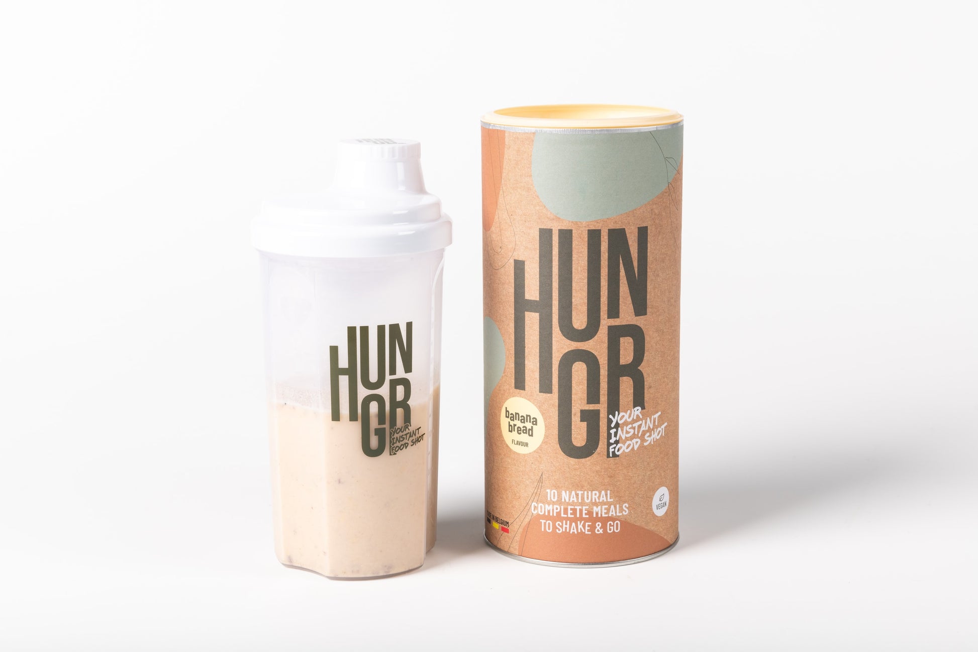 Hungr is een volwaardige maaltijdshake met een gebalanceerde mix van eiwitten, koolhydraten, gezonde vetten, vezels en essentiële vitaminen en mineralen, perfect om je dag te voeden.
